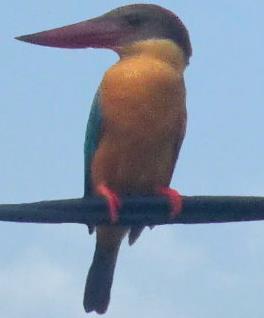 Braunkopfliest, aber der Storchenschnabelliest ist um vieles größer, cirka 32 bis 38 Zentimeter er hat eine Flügelspannweite bis cirka 60 cm und sein beachtlich großer roter Schnabel erreicht fast 20 cm Länge.