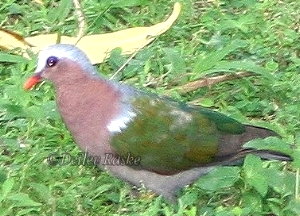 aufgefallen Die Bronzefruchttaube Ducula aenea ist eine große Taubenart. Sie ist auch unter den Namen Glanzfruchttaube bekannt. Ihre Körperlange ist 40 bis 45 cm wird sie kann bis 550 Gramm schwer werden. Die Weibchen sind nicht ganz so schillernd leuchtend.