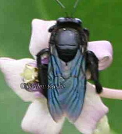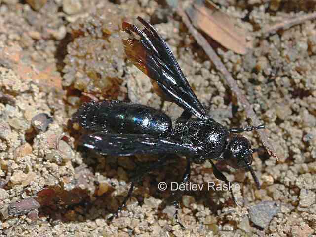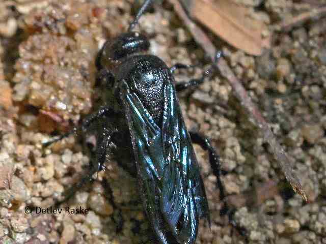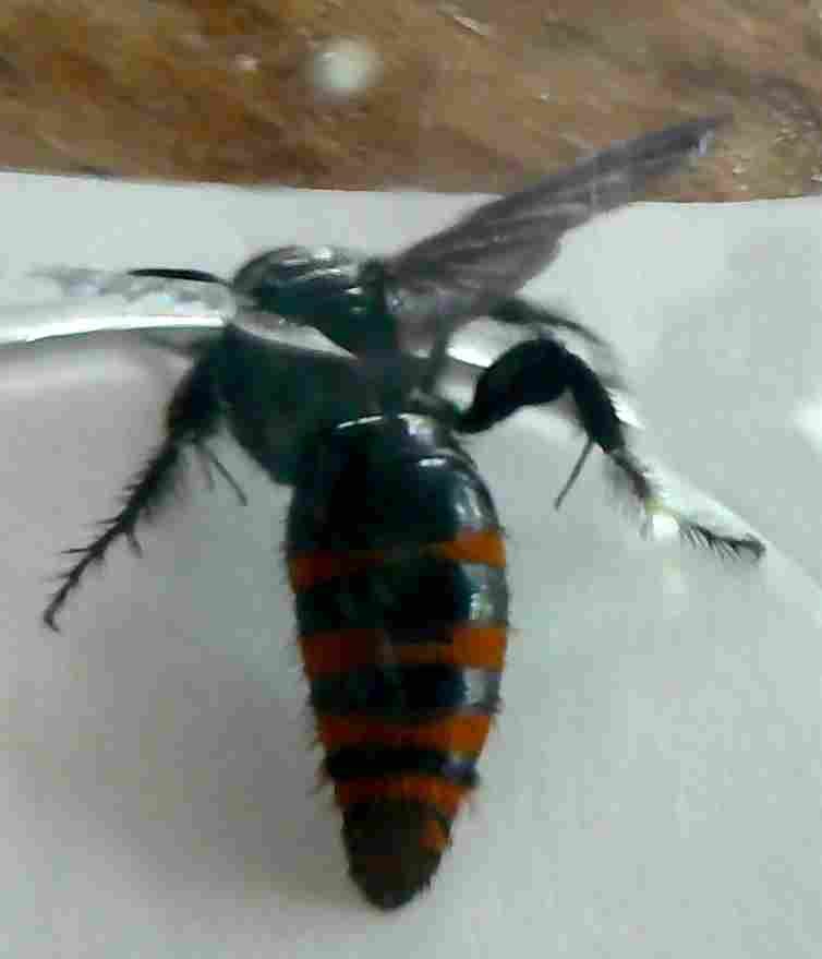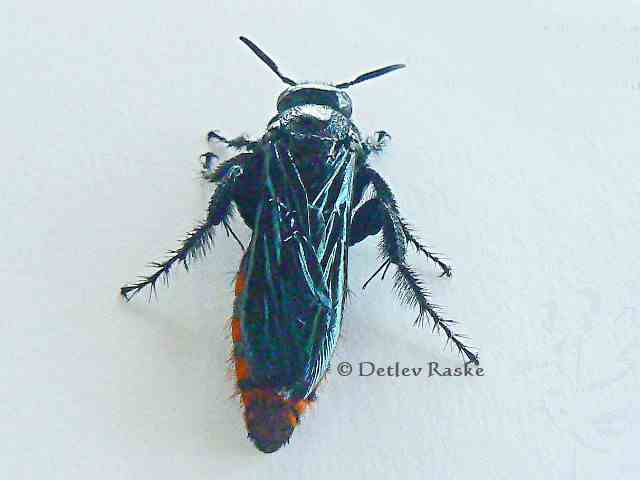 Scolia sp. wirkt doch etwas bedrohlich, aber kümmert sich nicht um Menschen. große Wespe Scolia sp. circa 3,5 cm
