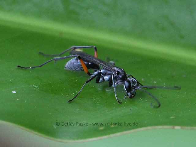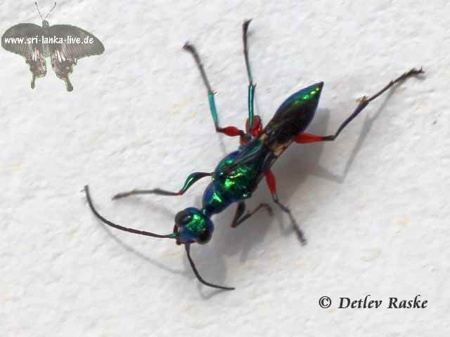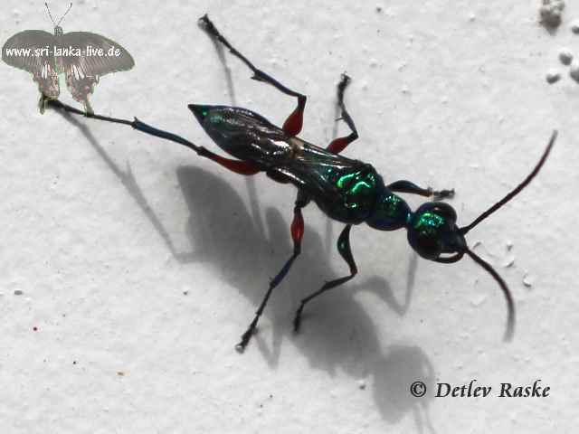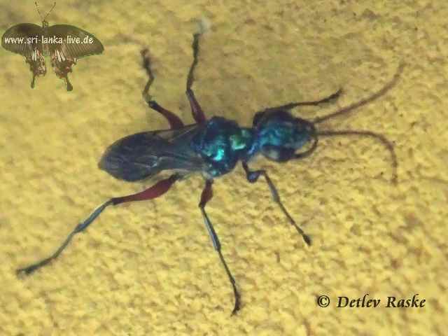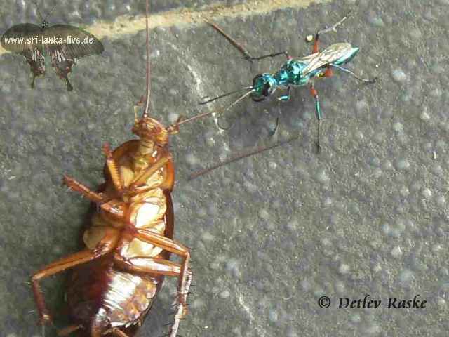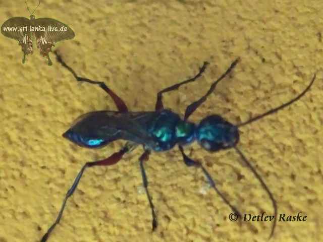 Zu den Insekten in Sri Lanka gehört auch die Juwelwespe Ampulex compressa ist ein wirklich hübsches Insekt und auch noch sehr nützlich.