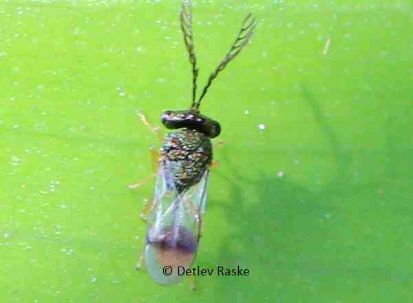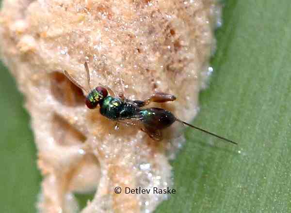 kleine Schlupfwespe mit gewaltigen Kokon grüne sehr kleine Schlupfwespe
