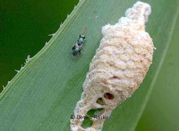 kleine grüne Schlupfwespe auf Kokon Schlupfwespe auf Kokon