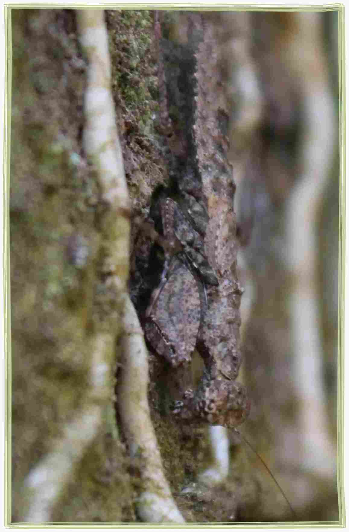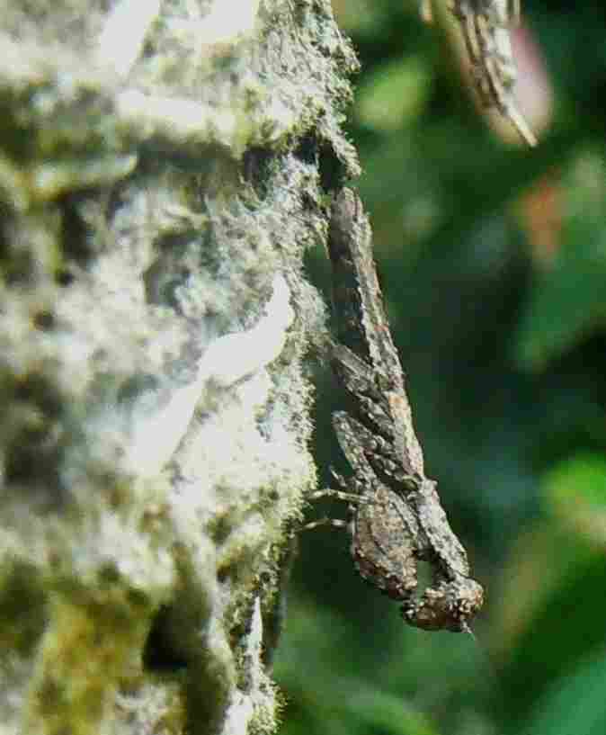 Gottesanbeterin (Humbertiella ceylonica)am Baumstamm Humbertiella ceylonica am Jackbaum