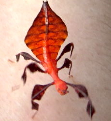 Ich hab als ehemaliger Zoofachhändler schon viele Insekten gesehen aber ein rotes wandelndes Blatt hatte ich vorher auch noch nie gesehen. Keine Angst die Tierchen sind harmlos sie fressen selber nur Blätter.