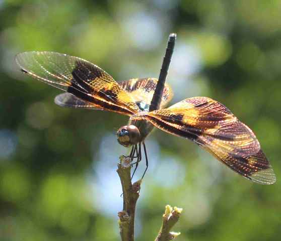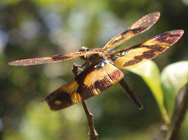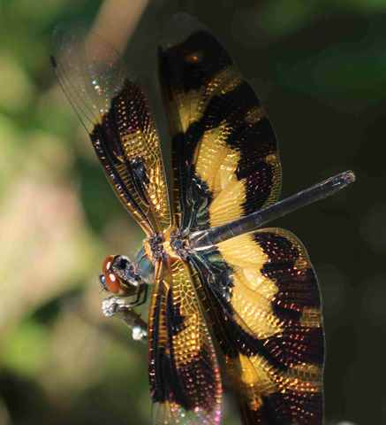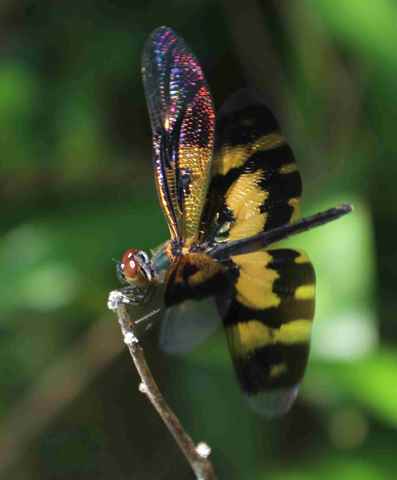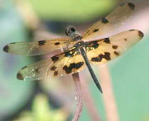 Das Foto zeigt eine weibliche Libelle der Art Rhyothemis variegata variegata