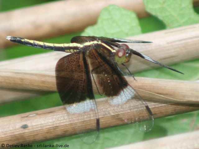 Alle Libellen brauchen für ihre Fortpflanzung Seen Tümpel und Flüsse und davon gibt es reichlich in Sri Lanka. Libellen sind Räuber und ernähren sich als Larve und als Erwachene Tiere von anderen Kleintieren.