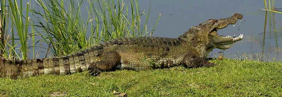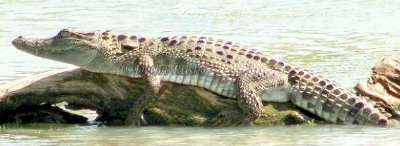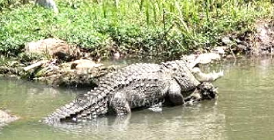Auf dem Rückweg vom Yala Nationalpark fragten unsere Gäste ob es in Sri Lanka auch freie laufende Krokodile gibt!. In dem Moment überquerten wir gerade einen kleinen Fluß - JA guck mal da sagte ich und zeigte auf diesen ca. 4-5m großen Prachtburschen.