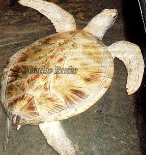 Die Schildkröte links: wurde leider von Besuchern mit Kaugummi gefüttert. Nun schwimmt sie in Spiritus.