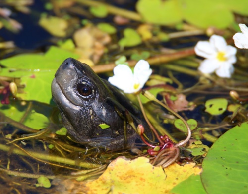 Wir haben seit Jahren 2 dieser Schildkröten bei uns im Garten. Sie sind oft im Teich, aber nach jedem stärkeren Regenguss rennen sie durch den Garten. Sie ernähren sich hauptsächlich von Pflanzen und Fischen wenn sie sie erwischen können. Ab und zu bekommen sie auch mal ein Stück Weißbrot, Ananas, Mango oder Bananen. Da wir seit 2012 einen gemauerten Teich haben, haben wir unsere Schildkröten eingefangen und an einem natürlichen Teich aus gesetzt. Denn die Tierchen brauchen halt Wasser und das war für sie bei uns nicht mehr erreichbar.