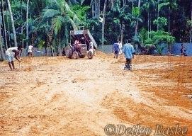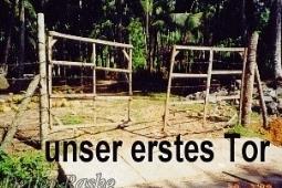 Die Steine, vorne im Bild, werden zu Bau der Mauer gebraucht. Im Hintergrund ist die Schutzhütte* für die Arbeiter zu sehen. * In der Regenzeit muss man sich öfter mal unterstellen und außerdem brauchten die Arbeiter einen trockenen Platz zum Tee kochen. Es wurde extra ein Arbeiter ausgewählt der schon kurz vor den Pausen Frühstück / Mittag dafür sorgte das der Tee pünktlich fertig war. Die Mauer wurde nicht ganz fertig im Urlaub also muss es nächstes Jahr weitergehen. Wie gut, denn für die 2m hohe Mauer rund ums Grundstück habe ich jede Menge Steine gebraucht, also war auch mein Geld zu Ende nicht nur der Urlaub! Und so ging es dann 2000 weiter.