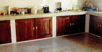 Das größte Problem für meine Leute war wohl genügend Kokosholzbretter für die Haustüren und Küchen Schranktüren zu besorgen. Das wusste ich auch nicht aber sie haben mir geschrieben das sie bis 150 km gefahren sind um alles zu besorgen. Aus Kokosholz werden in der Regel hauptsächlich Dachbalken gemacht und keine Bretter. Aber ich wollte unbedingt Kokosholz den es hat eine sehr schöne Maserung(siehe Elefant). Außerdem ist es ohne jede Behandlung 100 Jahre haltbar. Und so sind nun fast alle Türen, die Fensterrahmen, Schranktüren aus Kokosholz.